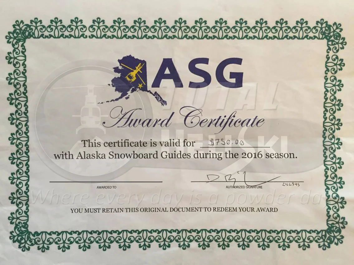 Total Heliski are excited to announce a special competition courtesy of our Alaska partner, Alaska Snowboard Guides. We are giving away in conjunction with them a $750 credit for heli skiing THIS 2016 SEASON. All you have to do is become a member of Total Heliski below. Share this page with your friends on social media and tag Total Heliski for another entry! This may be the impetus you need to get in a heli this spring for a once in a lifetime experience. Note- This operation is for expert skiers and riders only.