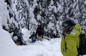 As the days followed, we got varying conditions- at first more powder, which made Day 2 incredibly deep, and then very cold on Day 3 (ie minus 20). The biggest danger, apart from the obvious avalanche etc, was losing skis. This, I managed to do on that cold day, and my feet – boot heaters or no boot heaters- paid the price, since I had to search up to my waist in powder trying to find it. Thankfully my Heliski client Mike saved the day, and we did find it, saving me hours of admin with the insurance company.