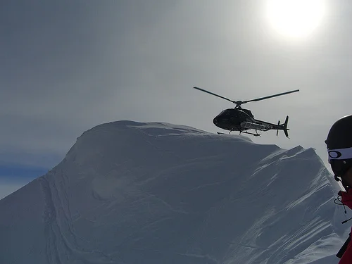 The pilot has to very carefully hover, allowing for the gradually decreasing weight as the skiers gently hop out one by one to avoid lop-sided spills.